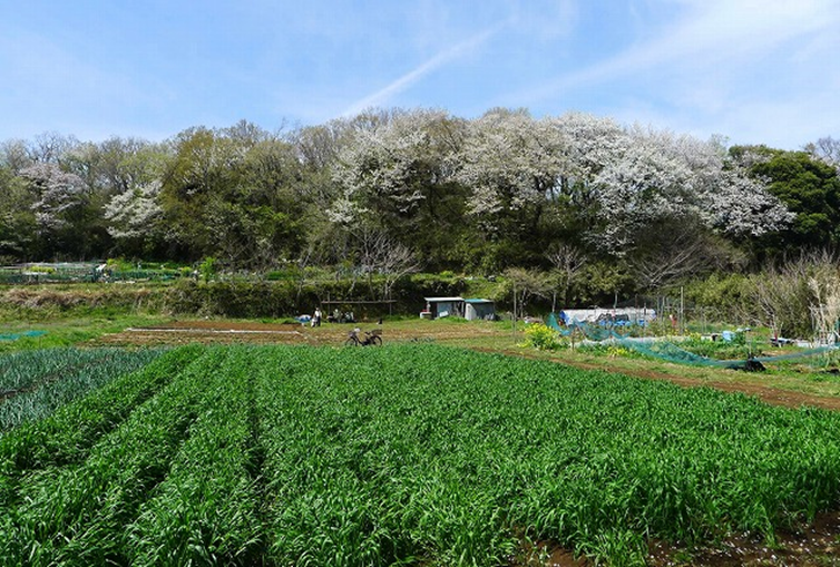 中畑 コムギ畑から望む山桜
