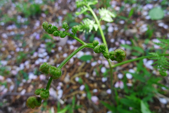 落葉畑にワラビが出ました