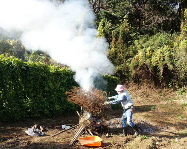 ・中畑 タマネギ苗植え付け、刈り草焼却