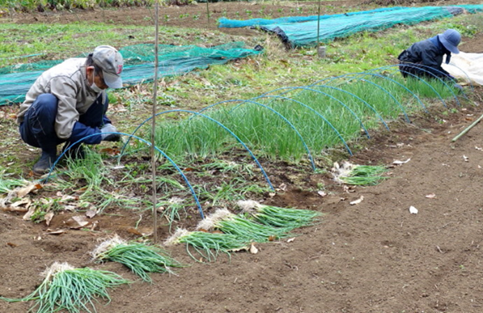 11月最後の作業日は晩秋を感じさせる気候となりました。今日も29名という大勢の会員が集まり、タマネギの定植や秋野菜の収穫、畑地の管理など多くの仕事に取り組んでいい汗を流しました。