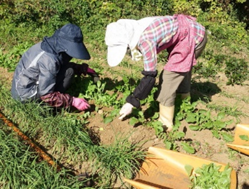 ・1区 チンゲン菜収穫・畑上げ、シュンギク収穫、ナバナ移植