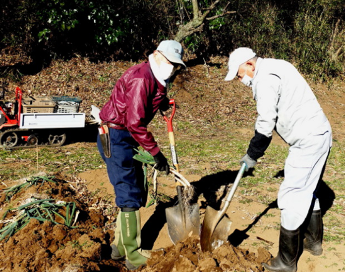 総出でスコップで開墾