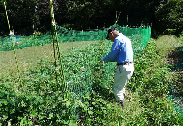 ・中畑:サツマイモネット周辺補修、タマネギ追肥・台風対策、小麦予定地苦土石灰散布