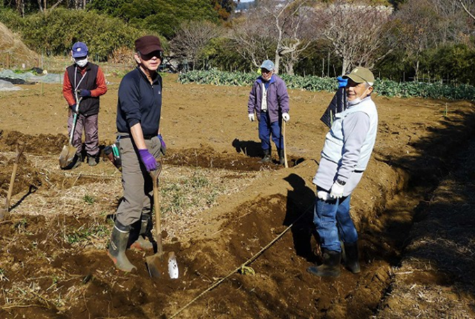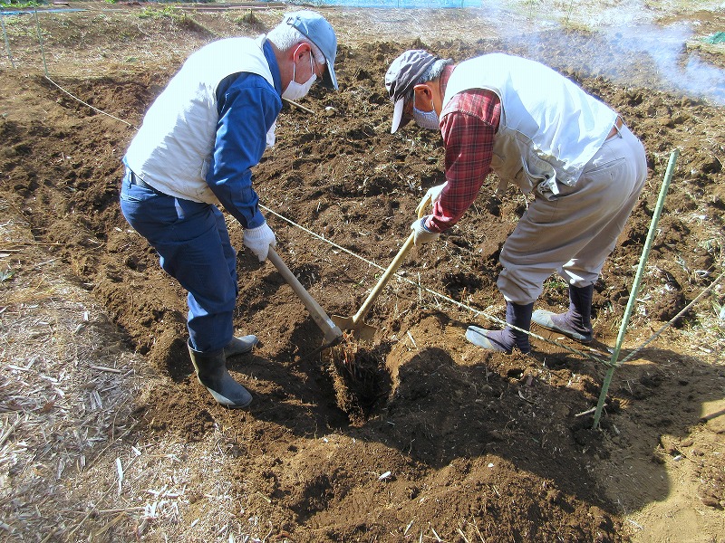 20日の日曜日が雨のため本日に振替となりました。今日は朝から快晴でしたが、空気は依然冷たく寒い一日でした。17名が参加し、耕作跡地の天地返しや畑区画の確認に汗を流しました。週末から暖かくなる予報で、春の訪れが期待できそうです。