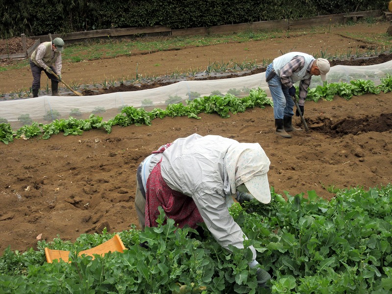 ・4区 カキナ・ミズナ・レタス収穫、石灰窒素散布耕耘
