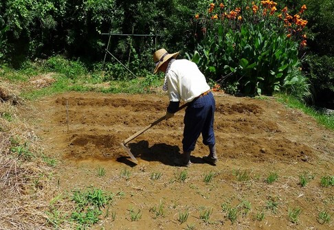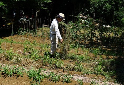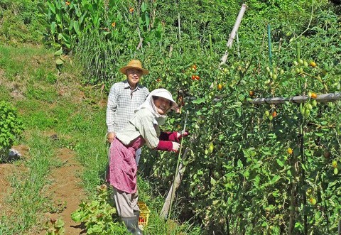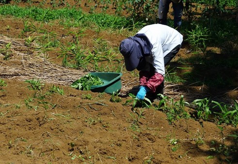 ・5区 トマト管理作業、サトイモ地草取り及び刈草敷き込み追加、北側アオジソ救出作業