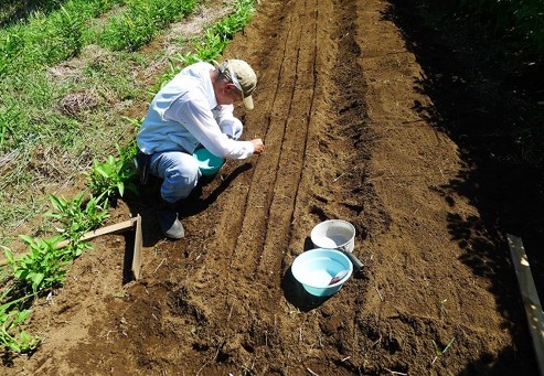 ・1区 ニンジン種蒔き準備・・・苦土石灰散布耕耘、施肥、畝立て