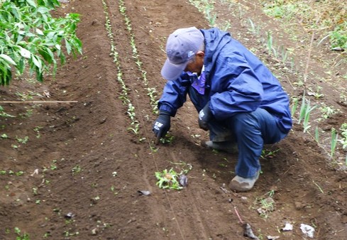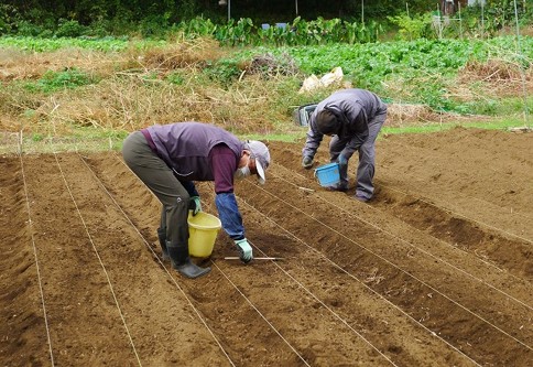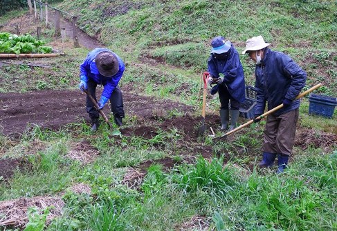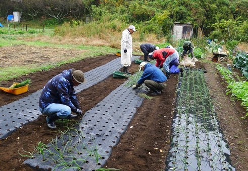 天気予報が外れ、朝から小雨が降り続きました。このため17名の会員はタマネギの苗をマルチに植付ける作業を重点に実施し、10時半過ぎに中締めをして解散しました。