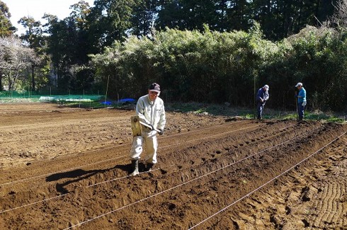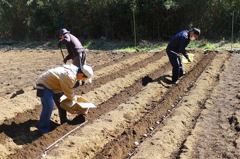 ・4区 ショウガ植え付け準備(施肥、畝立て)