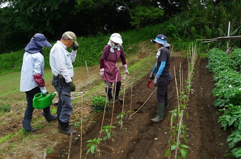 5区 施肥、耕耘、畝立て トマト・ナスの紐掛け管理作業