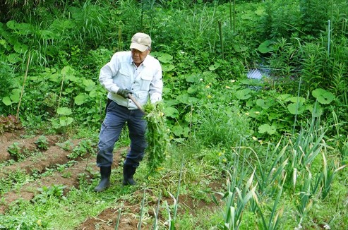 畑周辺草刈り、刈草寄せ