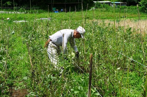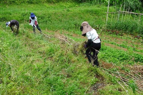 4区 シシトウ畝草取り、大ニンニク畑上げ・種取り