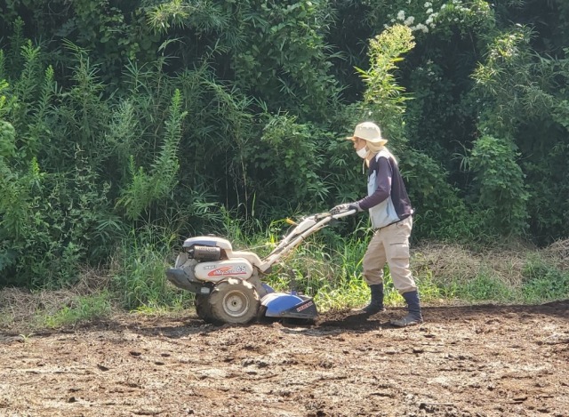 1区:秋冬野菜種蒔き準備:堆肥、牛糞、鶏糞追加耕耘、畝立て