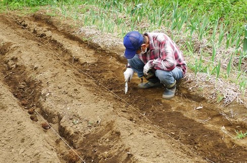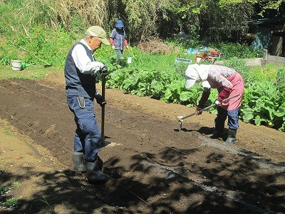 中畑 エダマメ用地施肥・耕耘・畝立て(3畝)種蒔(1畝)