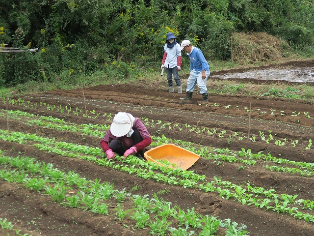 11区 葉菜類間引き・草取り・追肥・土寄せ