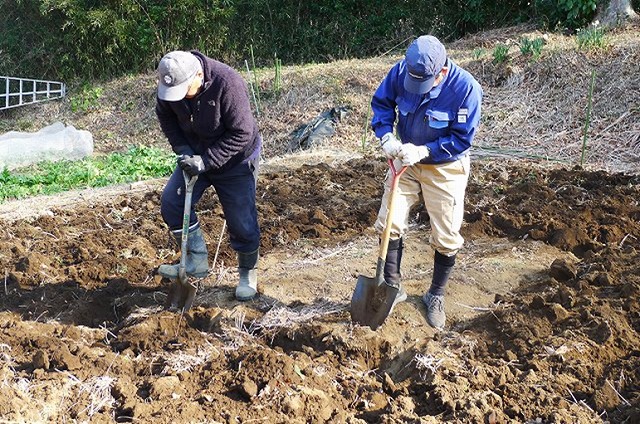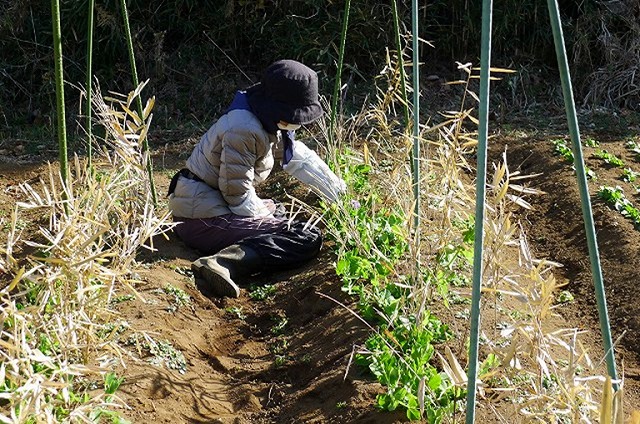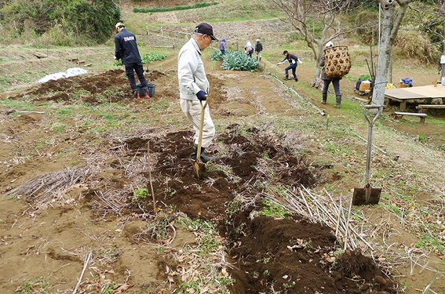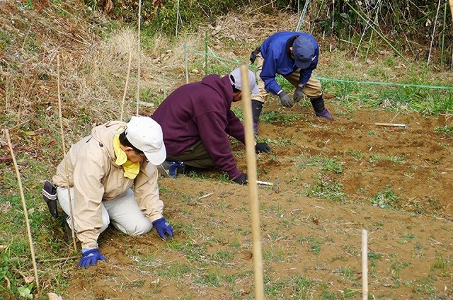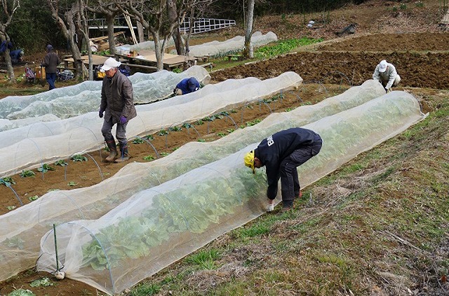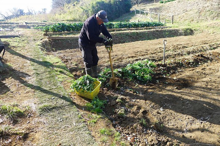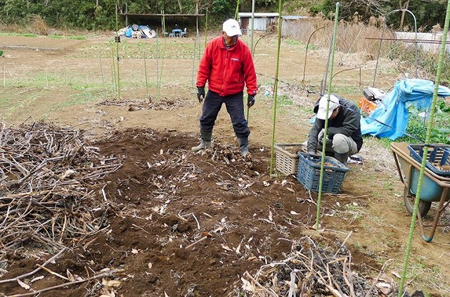 本日は快晴でしたが空気は冷たく寒の内らしい寒さの中、19名の会員が参加しました。この時期ならではの天地返しで汗を流し、また、葉物野菜の一番おいしいところを食べる鳥の侵入対策として、3区の全畝に防獣防鳥ネット張りを実施しました。