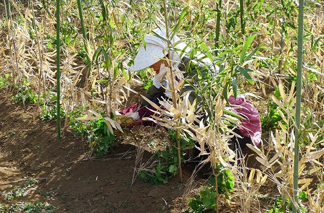 ・12区 キヌサヤのツルの誘引、草取り