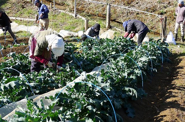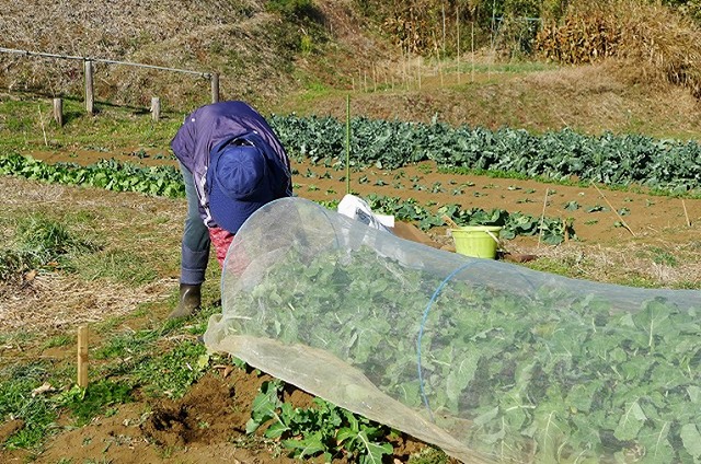 ・3区 ブロッコリー収穫、野菜類に防獣防鳥ネット張り