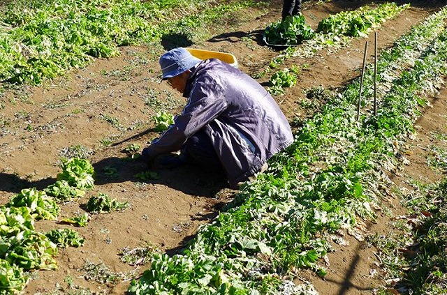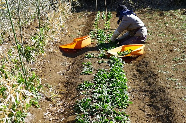 ・11区 葉菜類管理作業 絹さやツル誘引
