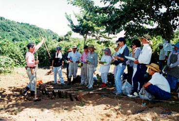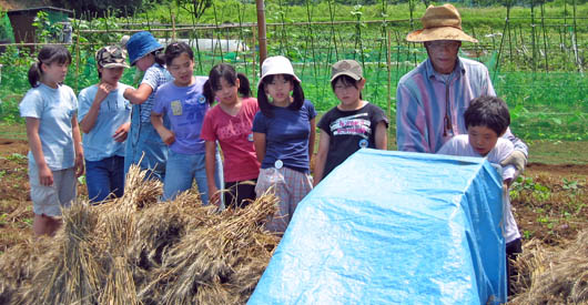 「じゅうねんだい」を中心に農作業を始め、さつま芋、大豆、黒豆、トウモロコシ、麦類(当時は大麦とライ麦)と順次栽培品目を増やしつつ、除草、木灰作り、堆肥散布、防獣ネット張りなど、農作業の基本を学びながらの活動であった。